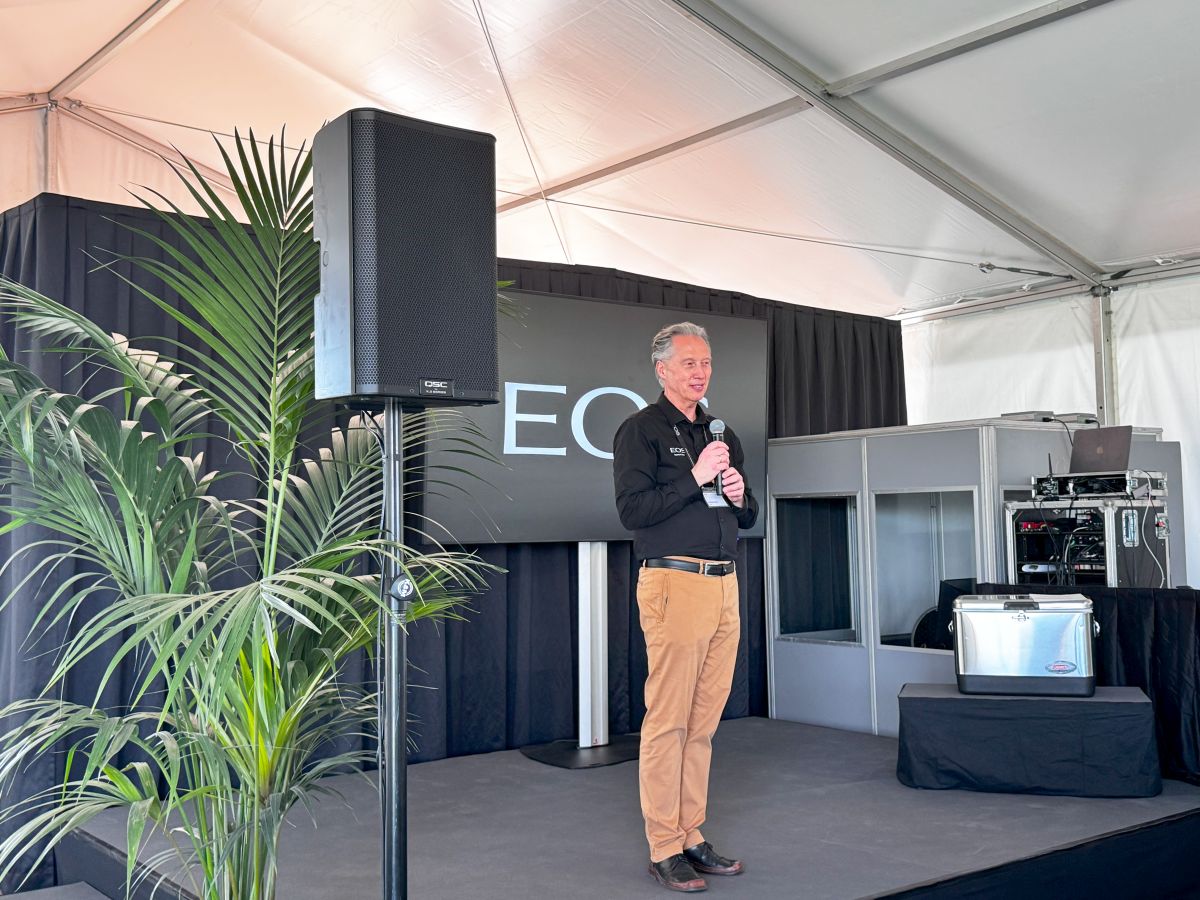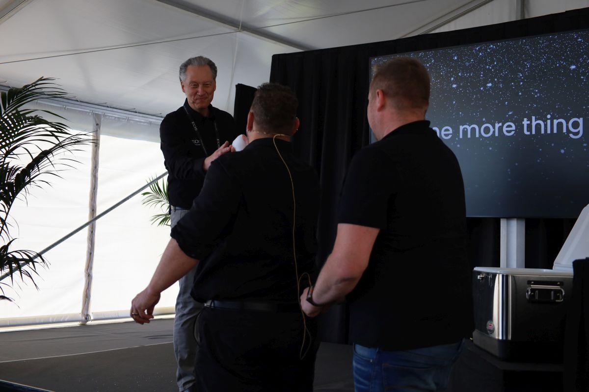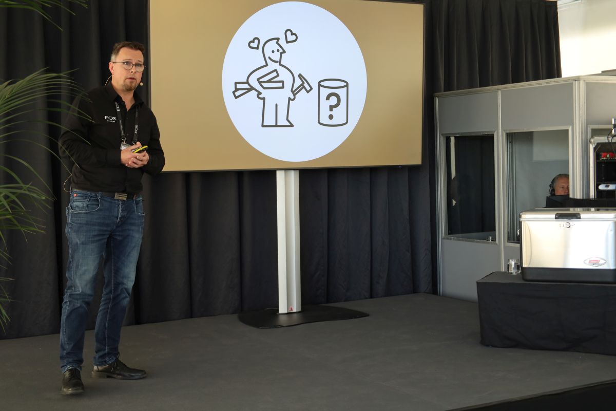 Entwicklungsleiter Kevin Schwarze zeigte exemplarisch an einem System-Saunaofen, wie EOS künftig mit einem modularen Ansatz vorgehen wird. Ziel sei es, die Individualisierungsmöglichkeiten für Saunaöfen und andere zentrale Komponenten deutlich zu erhöhen – immer im Zusammenspiel mit technischer Qualität und Wartungsfreundlichkeit. Der neuartige Systemofen erlaubt es einem Saunabauer, den Ofen hochgradig zu individualisieren.