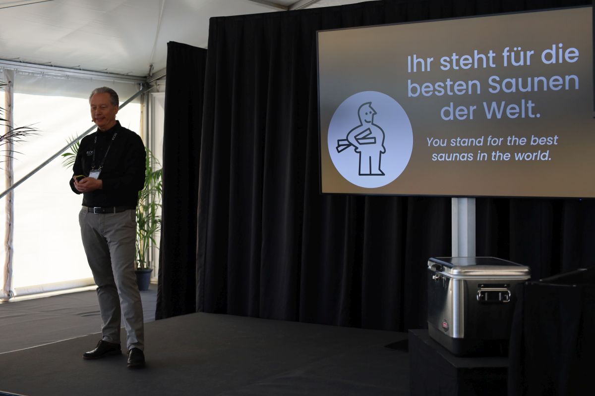 In seiner Keynote zur Unternehmensstrategie und dem neuen Unternehmensauftritt betonte Krauth, dass sich der Markt für maßgeschneiderte Premium-Saunen im Wandel und im harten Wettbewerb mit anderen Vertriebskanälen befinde. Energieeffizienz, Normen, Nachhaltigkeit sowie der steigende Wettbewerb durch internationale Komplettanbieter seien nur einige der Themen, die Saunabauer zunehmend fordern. Gerade die Schnittstellen zwischen Gewerken seien oft eine Schwachstelle – mit hohen Aufwänden, die dann die Ertragsseite belasten.