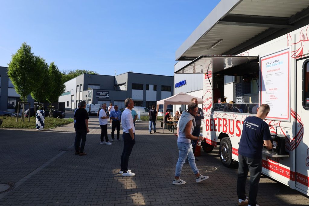 Zur offiziellen Eröffnung wurde das neue Pro Center gebührend gefeiert. Bei entspannter Atmosphäre konnten sich die Gäste nicht nur einen ersten Eindruck vom Standort verschaffen, sondern auch bei leckeren Burgern und kühlen Drinks in den Austausch mit dem Team und anderen Fachpartnern gehen.