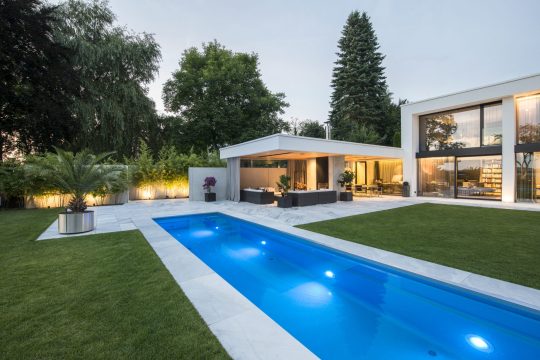 „Enjoy the moment“, heißt das Motto bei Compass Pools. 30 Becken-Modelle in verschiedenen Größen und das geradlinige, moderne Pooldesign ermöglichen der ganzen Familie zu Hause Entspannung wie im Urlaub, auf die elegante Art. Mit Compass Pools haben Wellnessliebhaber bei Swimmingpools von 4,45 Metern bis über 13 Metern Länge und unterschiedlichster Beckenbreite und -tiefe vielfältige Möglichkeiten. Raffinierte Poolideen sorgen für das gewisse Etwas im eigenen Pool: Ein High-Level-Skimmer ermöglicht zum Beispiel extra-hohen Wasserstand im Becken, ein neuer Infinity-Pool den besonderen Rundumblick ohne sichtbaren Beckenrand. Eine Einstiegsstufe über die gesamte Beckenbreite lädt bei den beliebtesten Pool-Modellen als Unterwasserbank zum entspannten Sonnenbaden im flachen Wasser ein. Zubehör wie Turbinen oder Gegenstromanlagen sorgen für Spaß beim Auspowern – und als Highlight hat man sogar einen Pool im Yacht-Look samt integriertem Whirlpool im Programm. Die Keramikbecken sind durch den mehrschichtigen Wandaufbau und das Ceramic-System besonders stabil, licht-, hitze- und UV-beständig. Außerdem bleibt die Wärme da, wo sie hingehört: im Pool. Schon nach wenigen Tagen sind die Keramikbecken schwimmbereit.