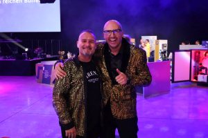 Am Abend wurde die Halle festlich für den Galaabend vorbereitet und geschmückt. Geschäftsführer Marco Schneider und Elena Jakobson eröffneten Galaabend und bedankten sich zuerst bei allen Mitarbeitern, die mit ihrem Einsatz dieses große Event erst möglich gemacht hatten. Er bat drei Mitarbeiterinnen auf die Bühne: Kateryna Balan (Büromanagement), Stefanie Höhl (Marketing) und Christiana Jeroch (Zentrale). Diese wurden stellvertretend für alle Mitarbeiter mit einem Blumenstrauß für ihren außerordentlichen Einsatz geehrt. Joshua Ens (Auszbildender im Marketing) und Harald Hofmann (Aftersales Support) wurden ebenso für ihr Engagement im Vorfeld der Veranstaltung (Vorführprodukte, technische Umsetzung) geehrt.