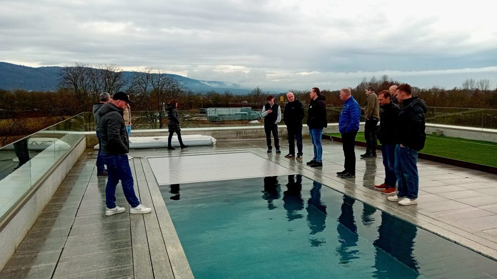 Mehrmals im Jahr lädt der Hersteller von Poolabdeckungen Fachhändler und Poolbauer zur Schulung ein. Doch „Schulung“ greift zu kurz. Es ist eher ein Werkstattgespräch. Ein Perspektivwechsel. Ein Eintauchen in Prozesse, die sonst hinter verschlossenen Hallentoren stattfinden.